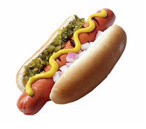 Description: Long meat by-product surrounded by a bun and condiments. Found often at sporting events.